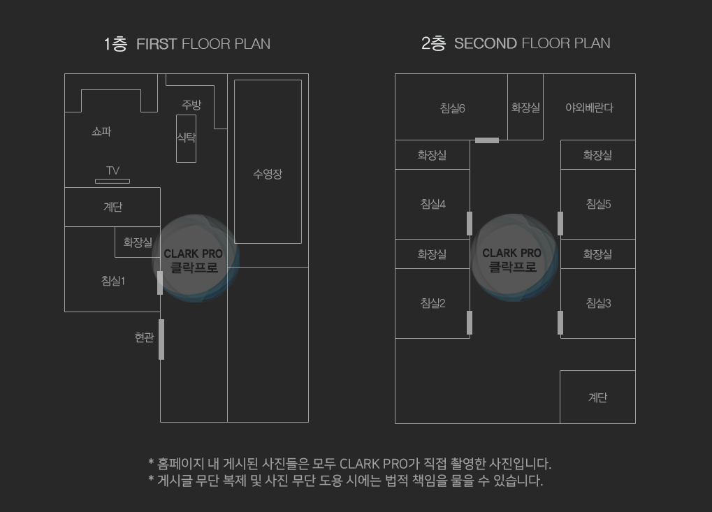 방 6개 및 각 방 화장실